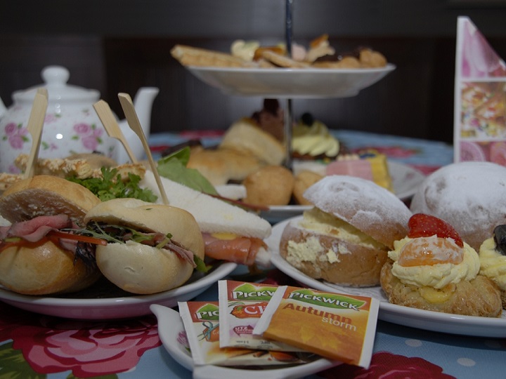 Geniet van een selectie verfijnde zoete en hartige hapjes, versgebakken scones en onbeperkt thee, stijlvol aan tafel geserveerd.